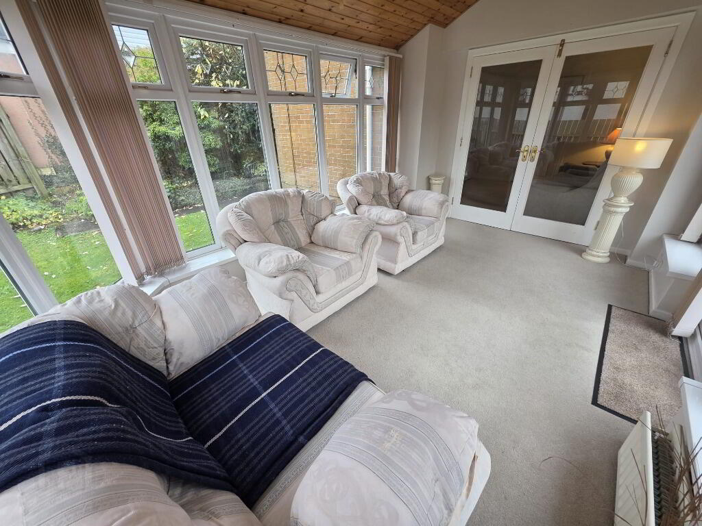 Internally, the home offers three reception rooms comprising a bright entrance hallway leading to a spacious lounge with feature fireplace, a separate dining room ideal for family use or entertaining, and a stunning, generously sized conservatory flooded with natural light. The well-appointed kitchen provides a full range of fitted units and appliances with access to the enclosed rear garden. The ground floor also includes a convenient WC/utility suite, providing excellent practicality for busy households.