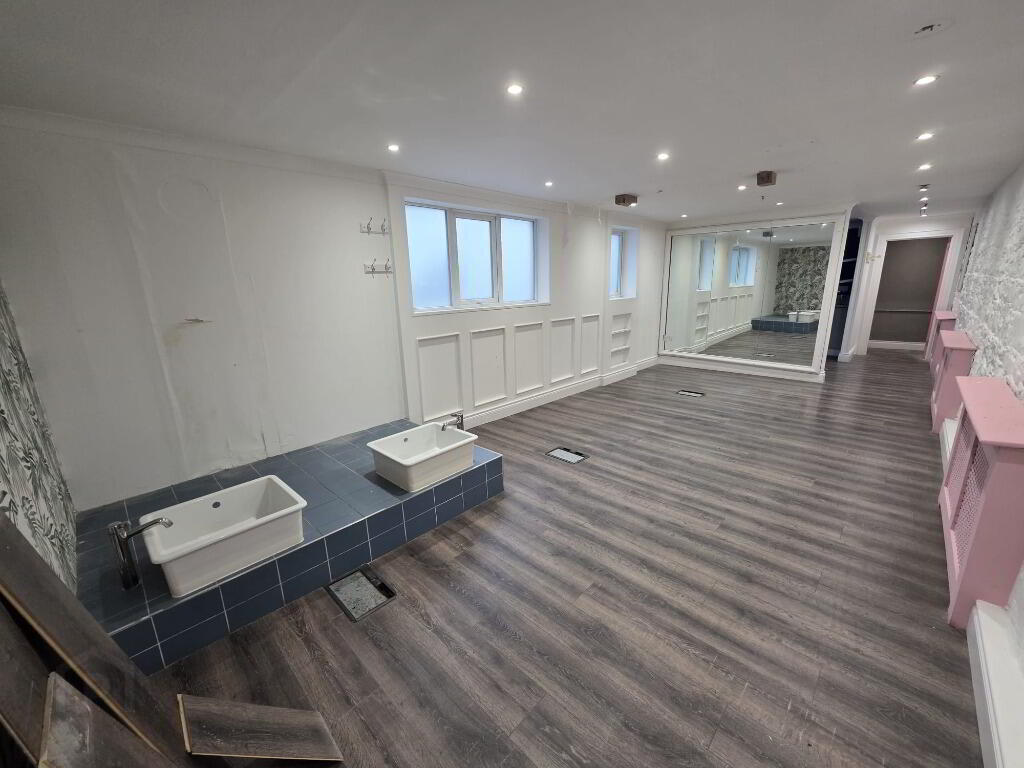 This impressive property offers extensive accommodation over multiple levels, making it an excellent opportunity for a wide range of commercial uses. The ground floor comprises a large front reception or open-plan workspace, ideal for customer-facing operations, along with a generously sized rear area suitable for additional workspace, storage, or operational use. A separate kitchen area is also located on the ground floor for staff convenience.