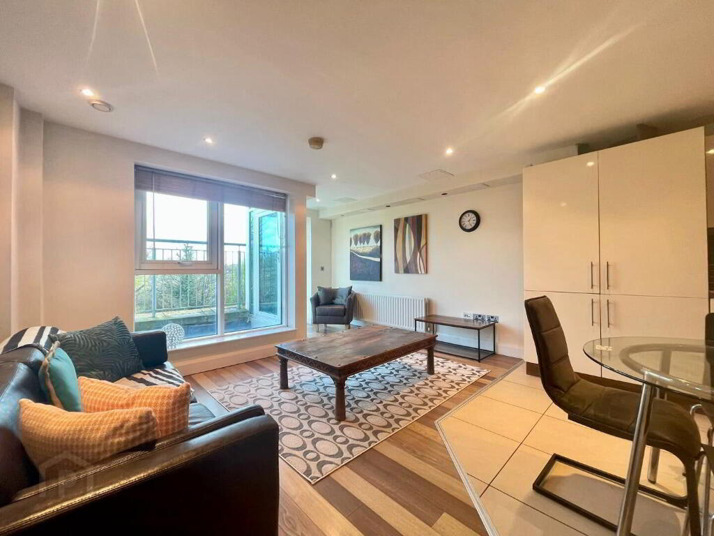 Internally the apartment has been finished to a great standard and comprises of a bright and spacious living room, with modern fully fitted kitchen and dining area. There are two sizeable double bedrooms with the master featuring an en-suite with shower and a large main bathroom with shower over bath.